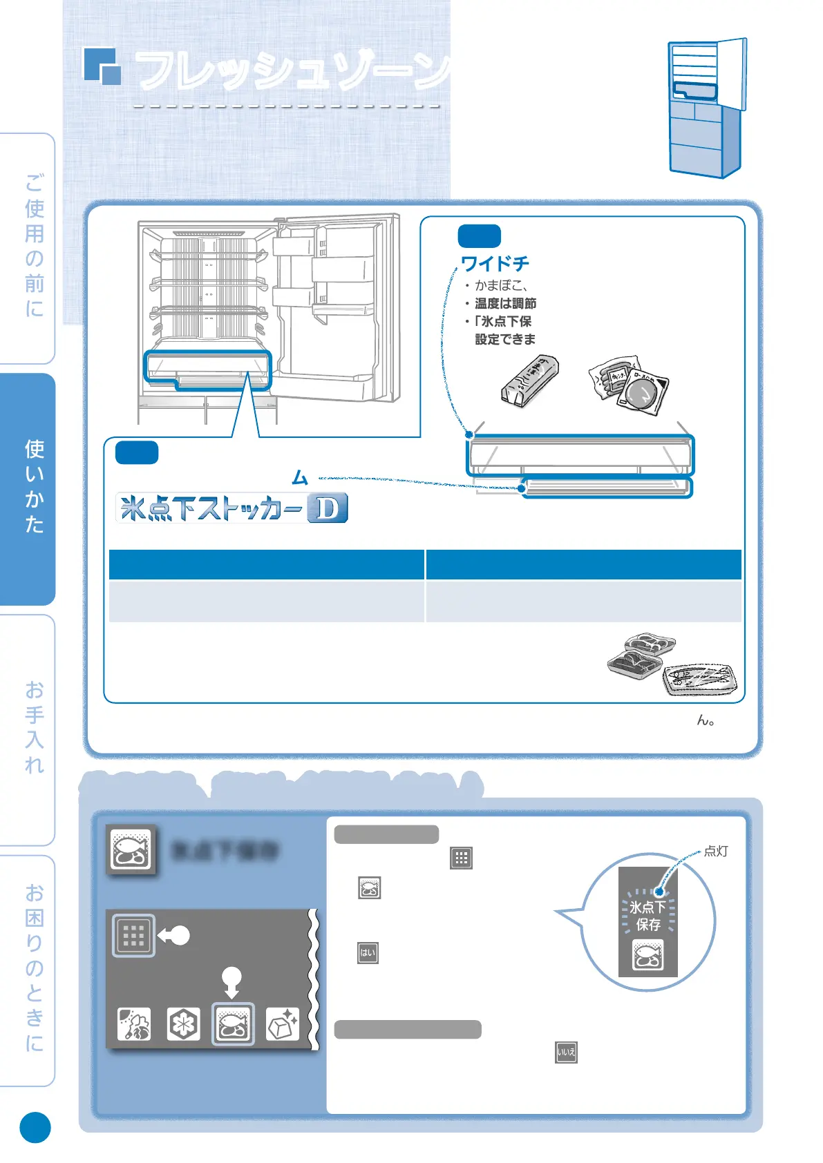 ※ご購入時、氷点下ストッカールームは、「氷点下保存」や「氷点下保存・解凍モード」には設定されていません。