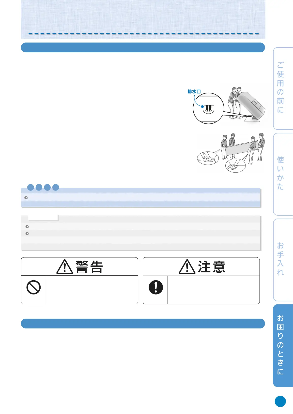 ❶給水タンク、製氷皿および貯氷箱の水や氷を捨てる。➡ 26〜27ページ