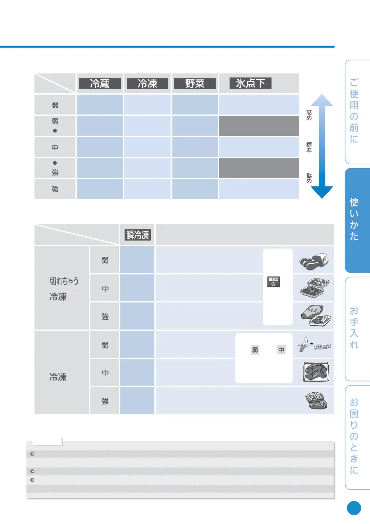 「冷凍」から「切れちゃう冷凍」に切り替えたときは、庫内の温度が安定するまでに時間がかかります(約2時間)。