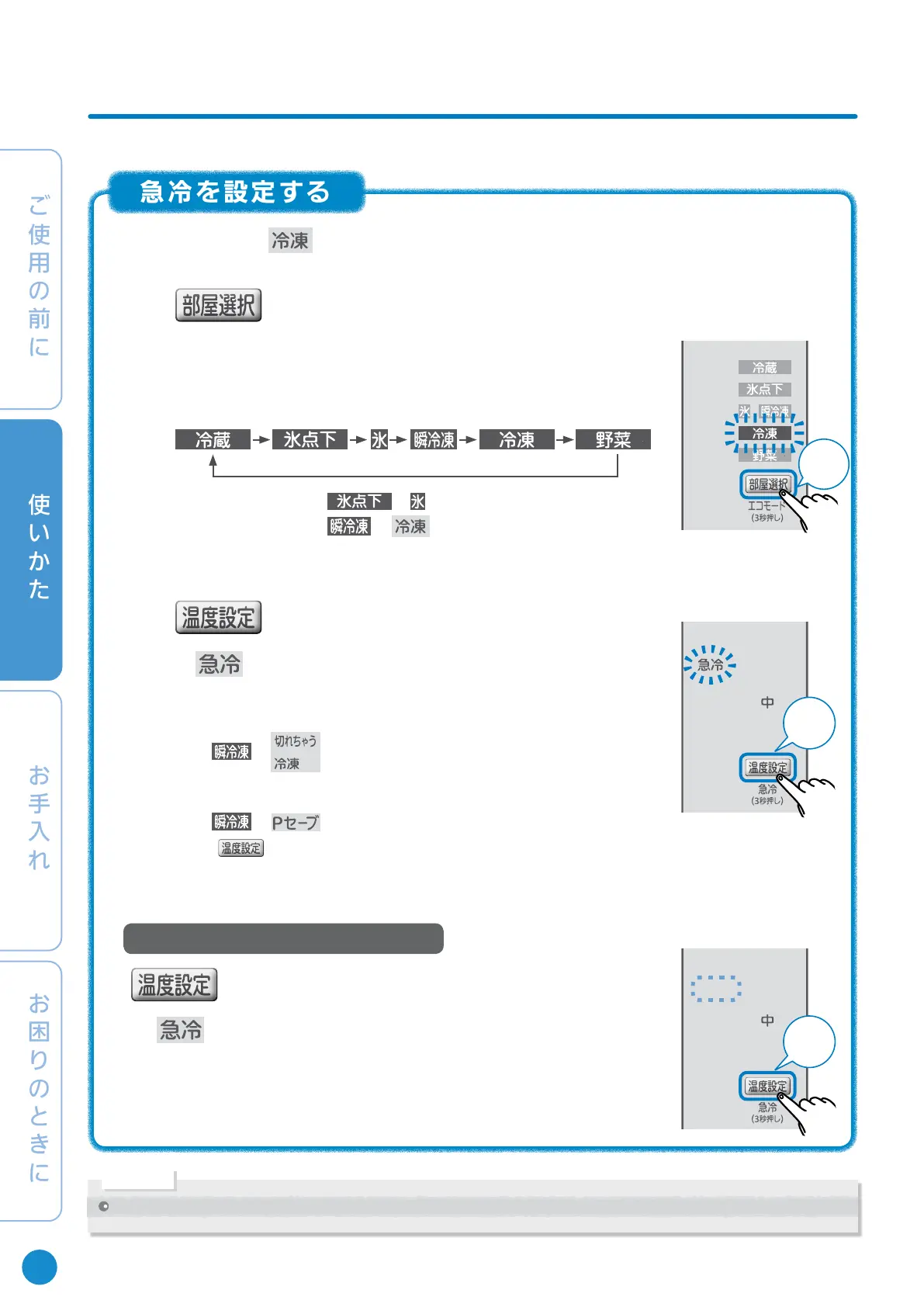 冷凍室を「急冷」に設定