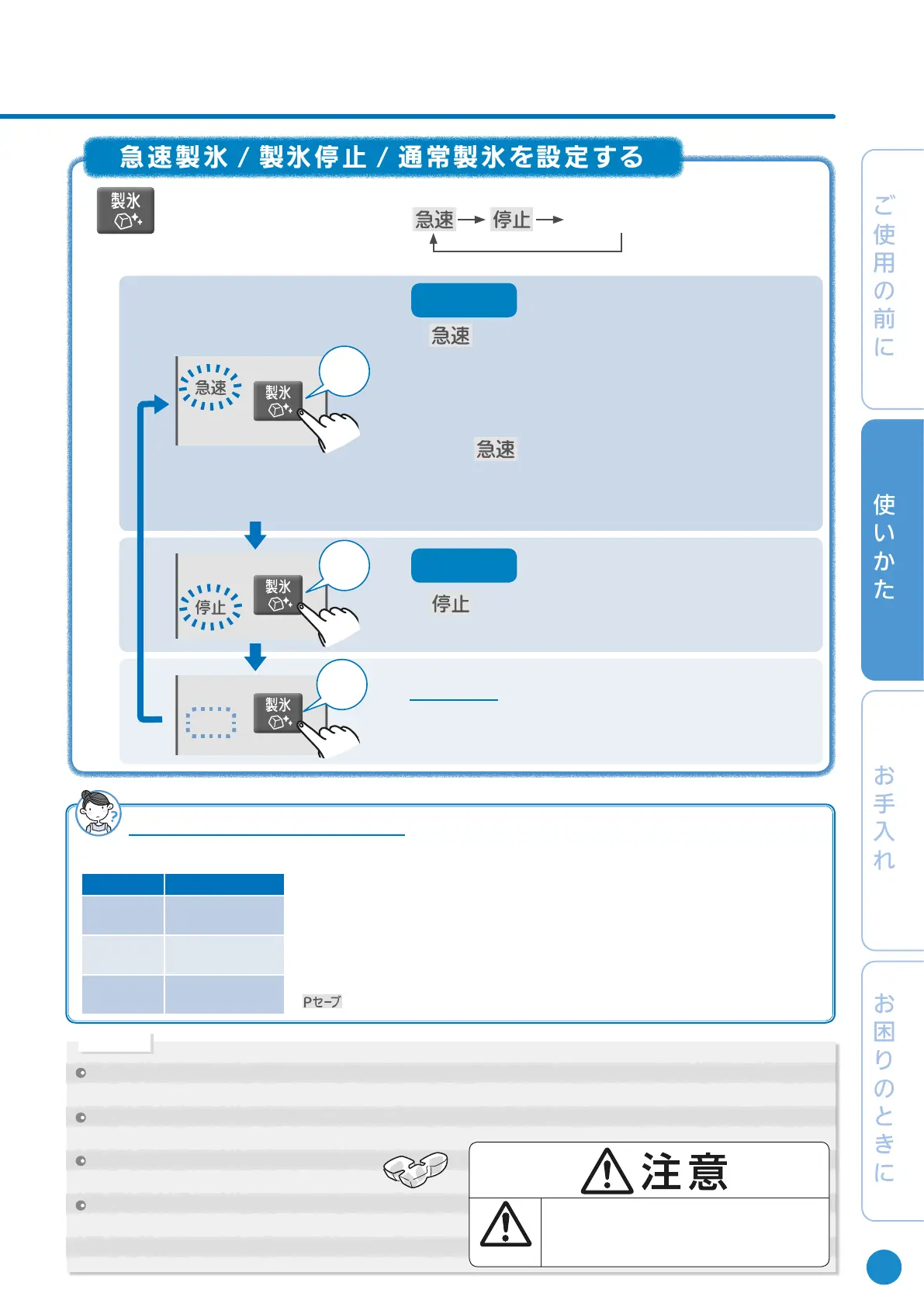 急速製氷 / 製氷停止 / 通常製氷を設定する