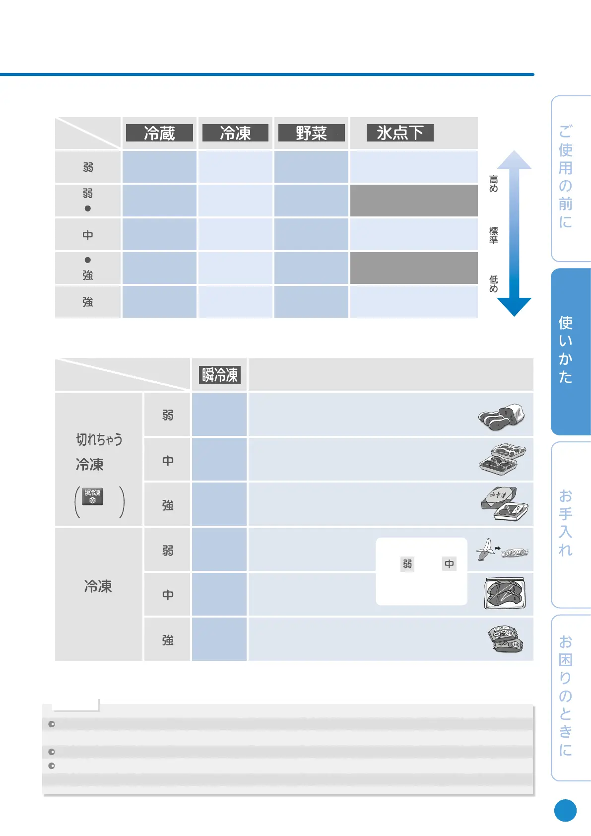 「冷凍」から「切れちゃう冷凍」に切り替えたときは、庫内の温度が安定するまでに時間がかかります(約2時間)。
