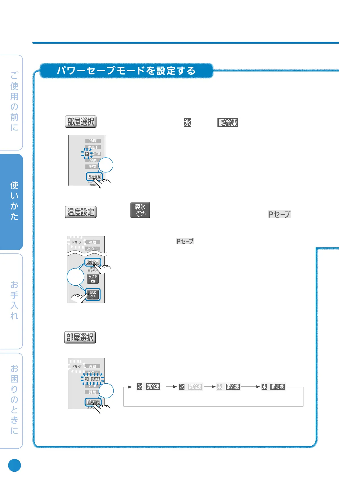 製氷室に設定 瞬冷凍室に設定 製氷室と瞬冷凍室に設定