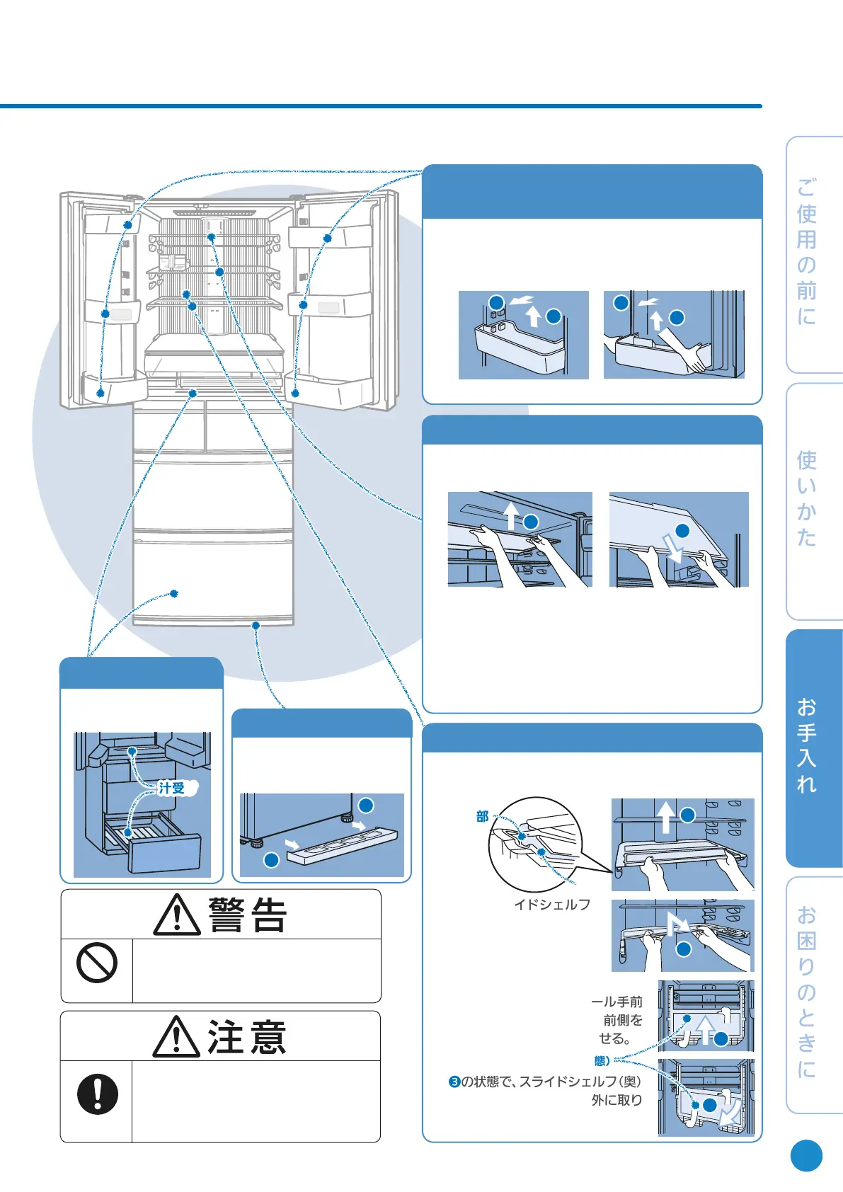 冷蔵室とドアのすき間を使ってガラスシェルフ(上)を