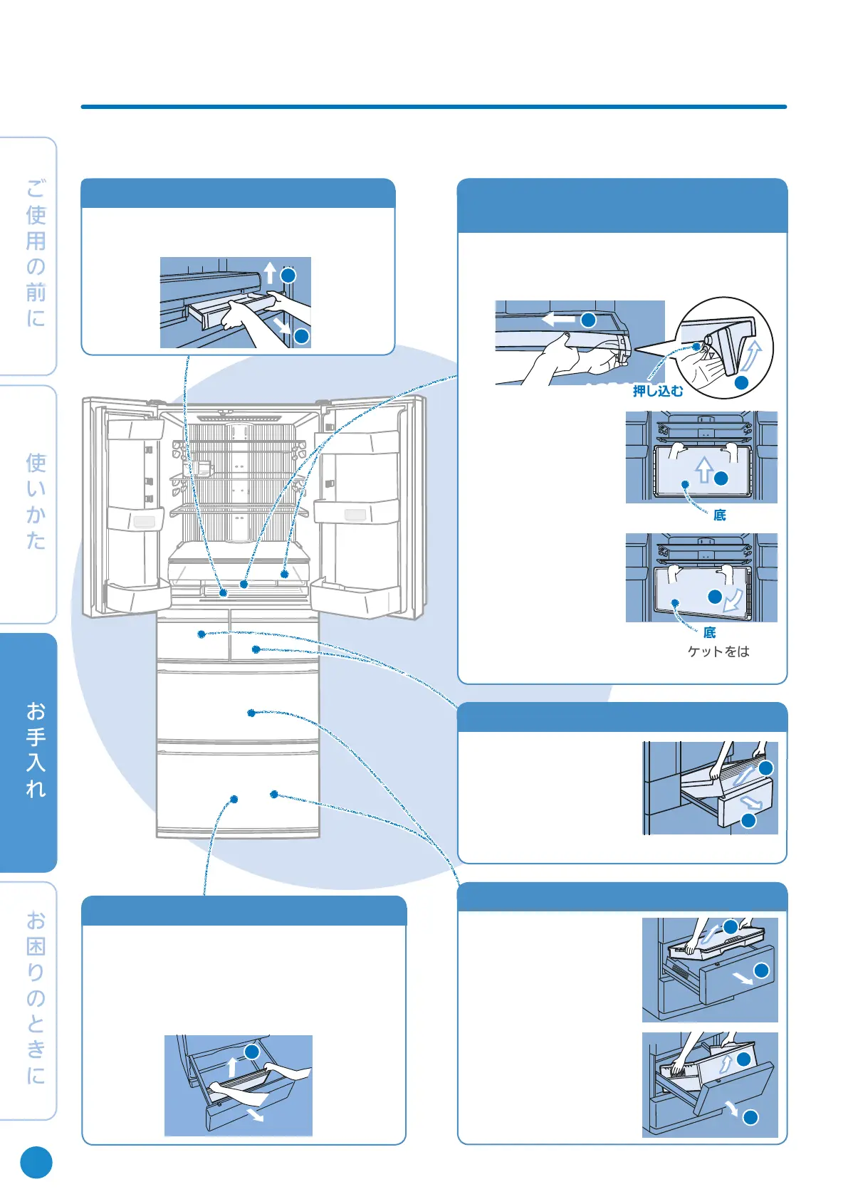 ❶氷点下ストッカーケースをいっぱいに引き出す。