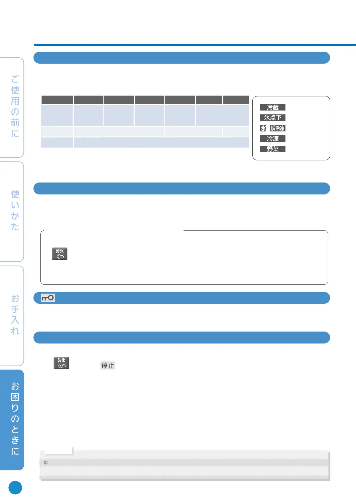 ❷ 給水タンク・製氷皿および貯氷箱の水や氷を捨て、お手入れをする。