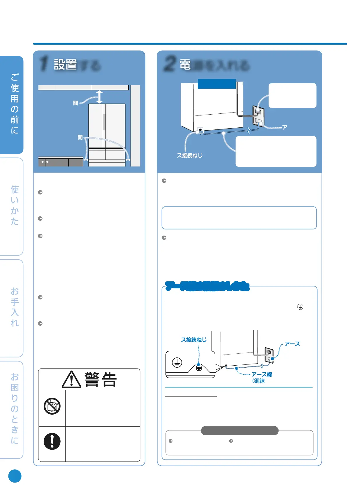 アース線をコンセント側のアース端子と冷蔵庫背面下部の