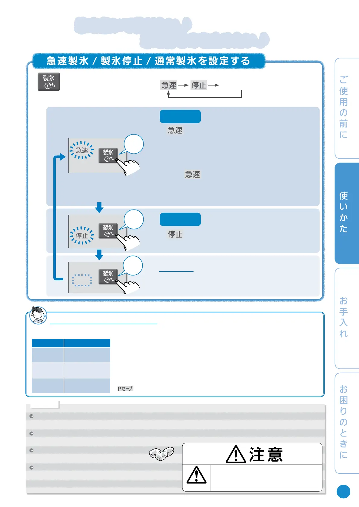 急速製氷 / 製氷停止 / 通常製氷を設定する