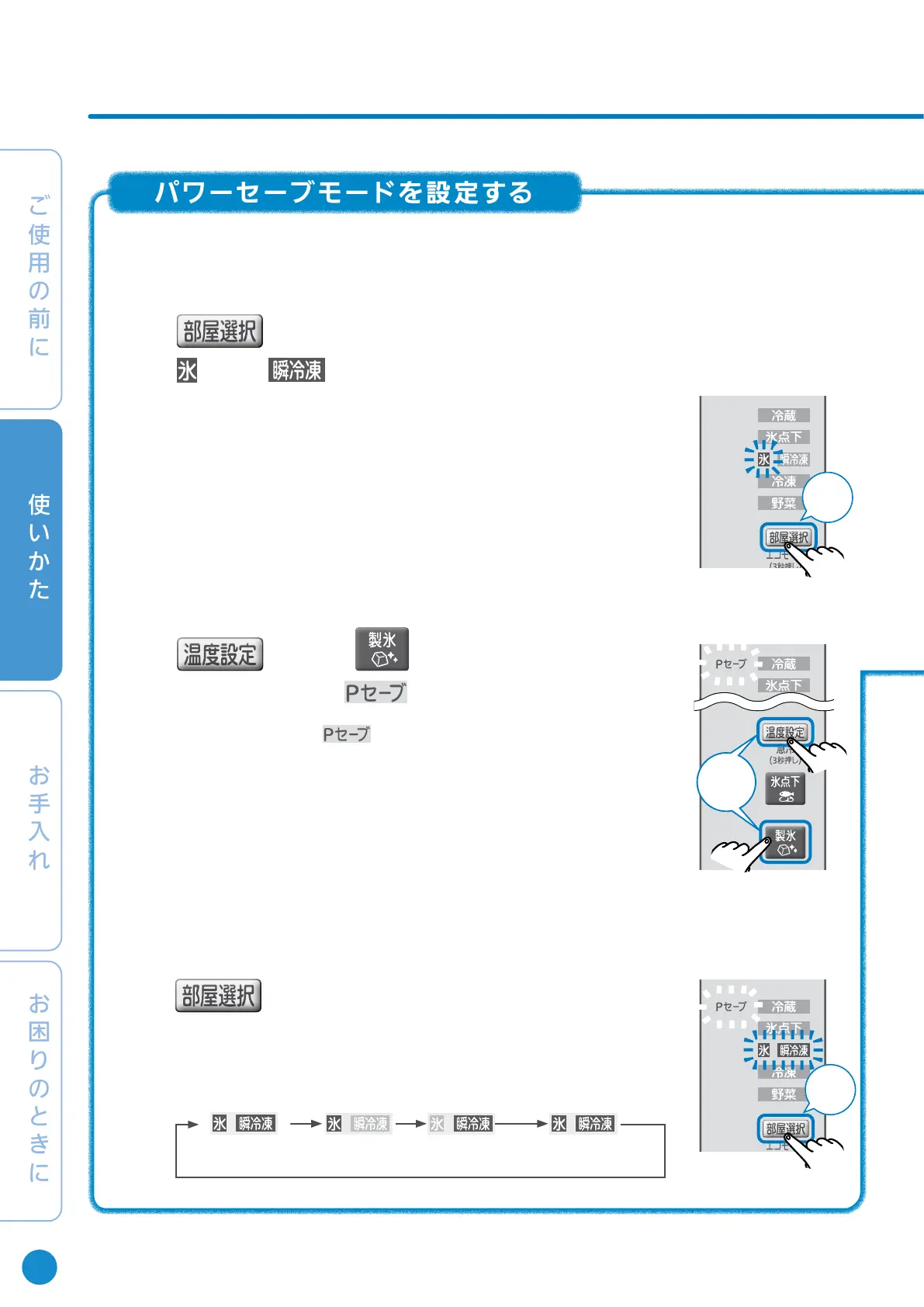 製氷室や瞬冷凍室を使わないときは冷凍能力をセーブして積極的に節電運転します。