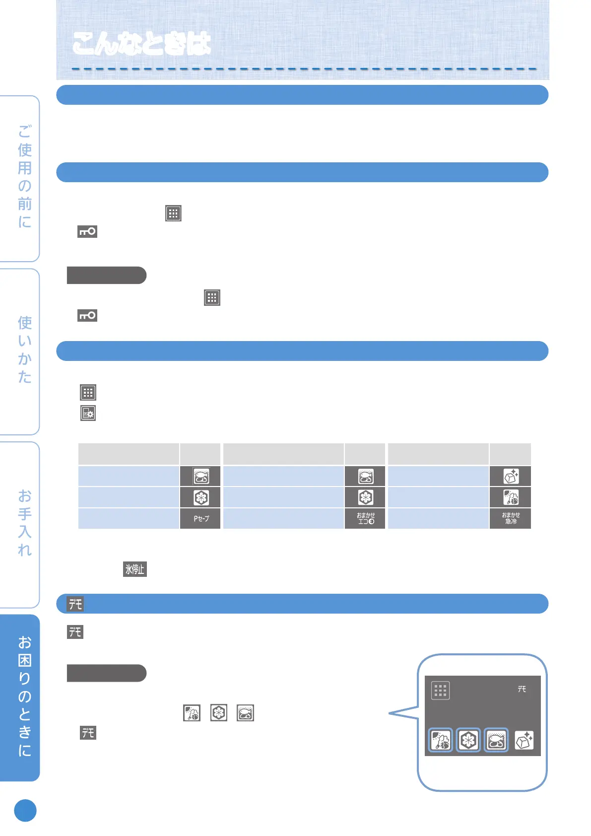 お子さまのいたずらなどで、操作パネルのアイコンを誤ってタッチしても設定できないようにします。