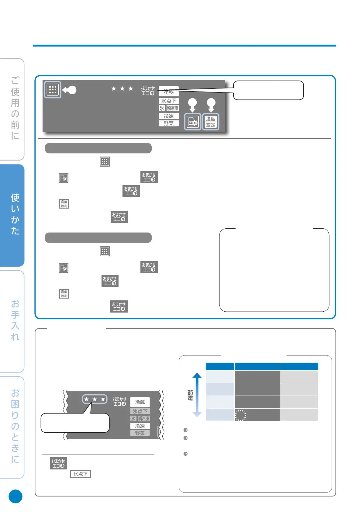 例: 冷蔵室と冷凍室が節電運転しているとき