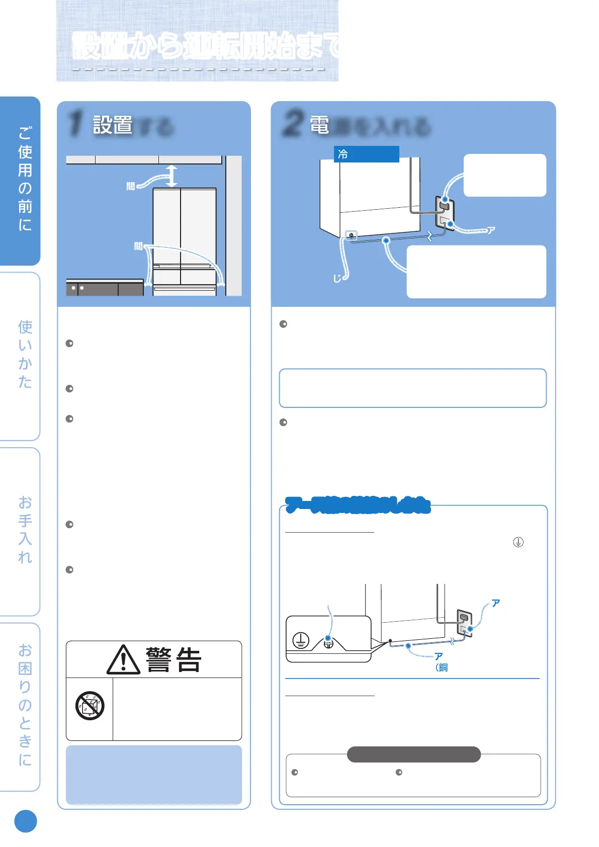 アース線をコンセント側のアース端子と冷蔵庫背面下部の