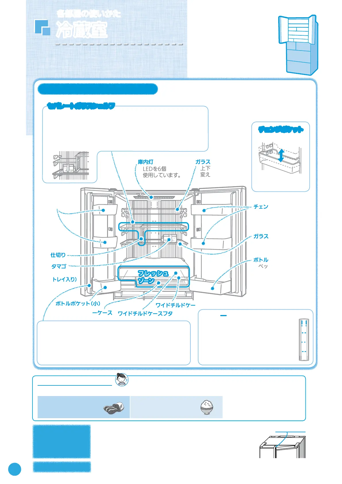飲み物やすぐに使う食品は冷蔵室に入れます。