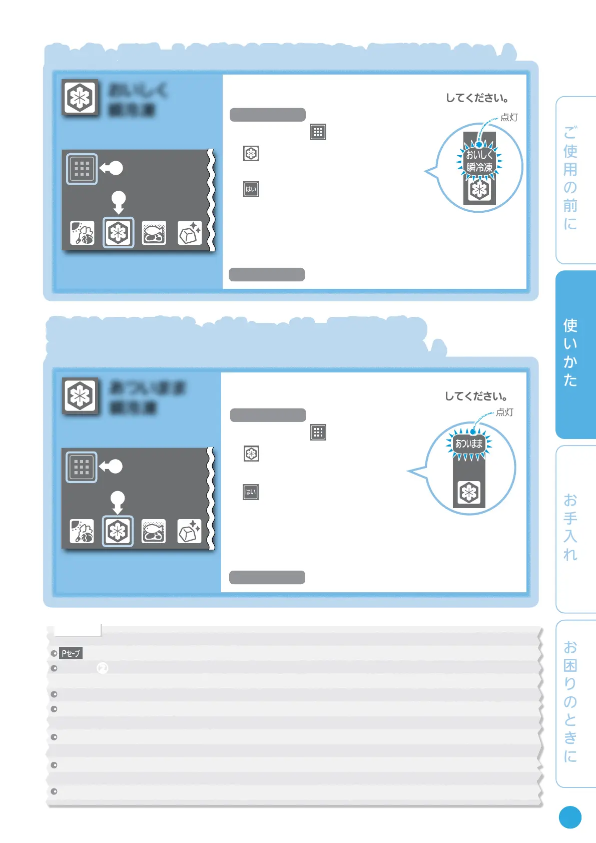 が表示されているときは「おいしく瞬冷凍」や「あついまま瞬冷凍」(以下、瞬冷凍)できません。➡ 26〜27ページ