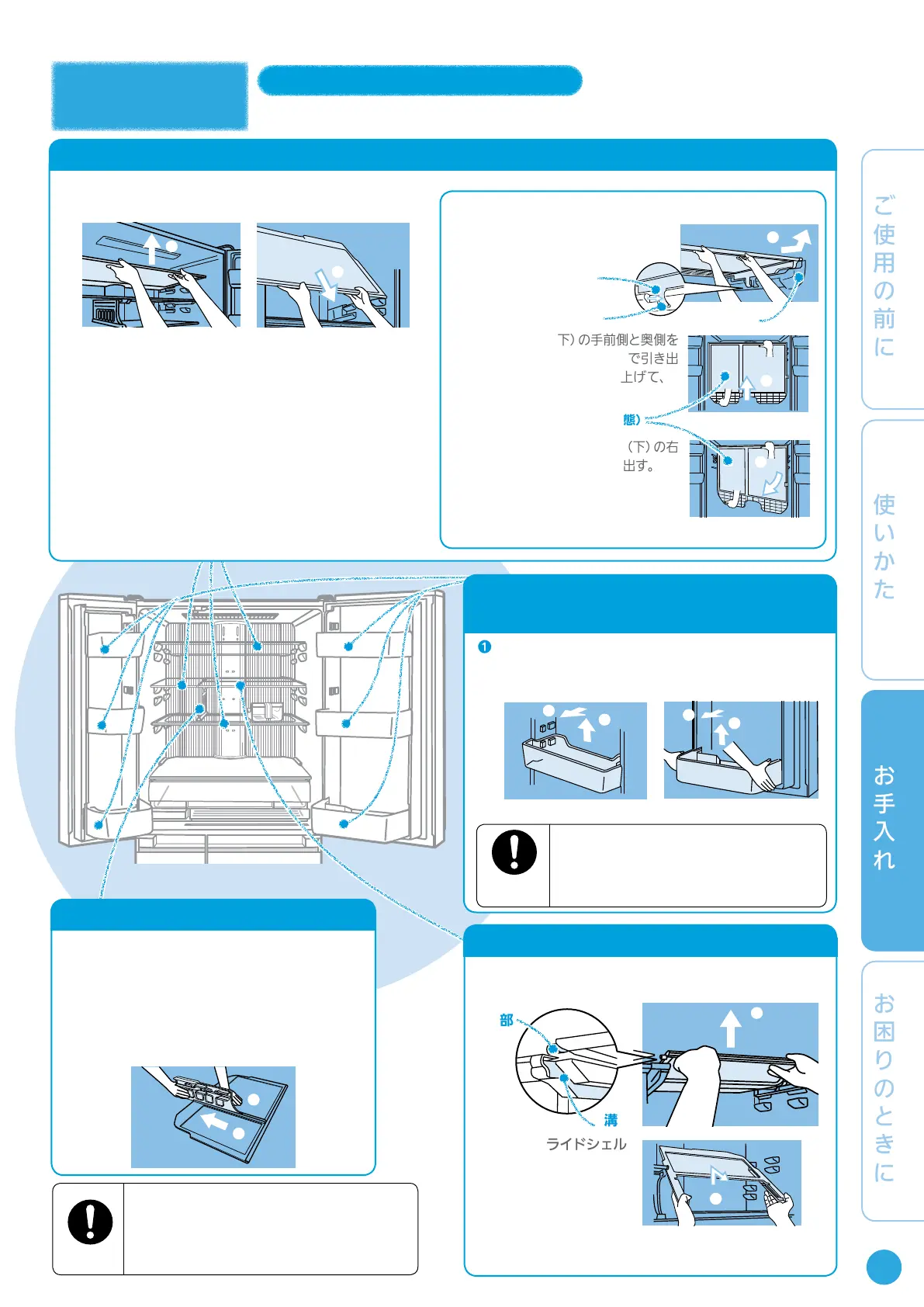 ❶ガラスシェルフ(下)を取りはずす。