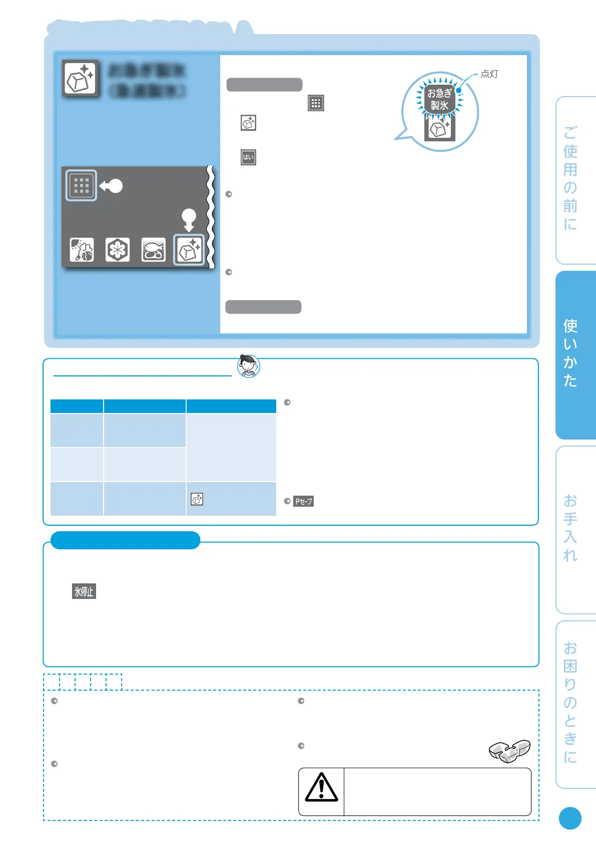 次のときは、お急ぎ製氷を自動的に終了し、アイコンの上の