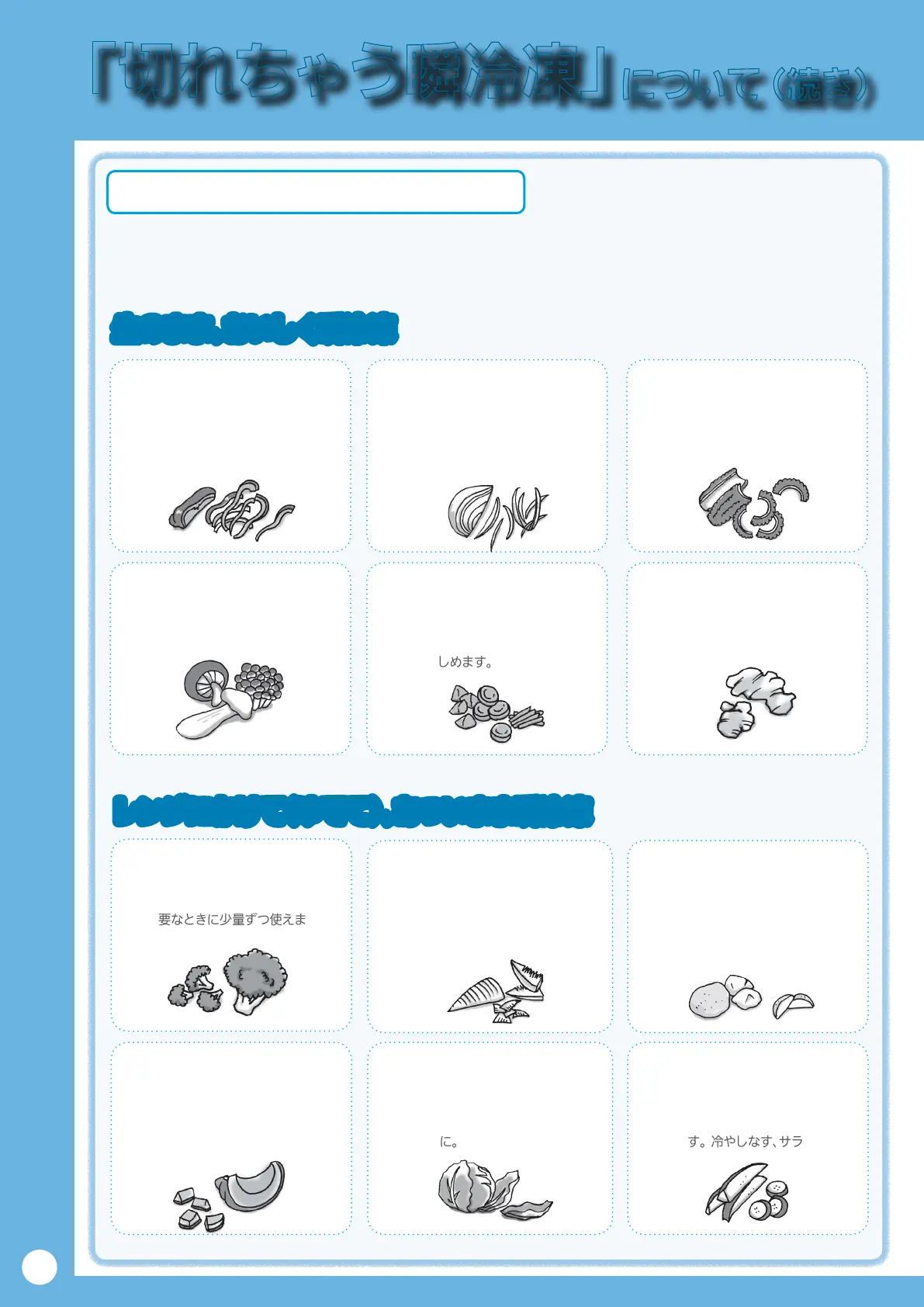 使い切れずに残った野菜を「おいしく瞬冷凍」すれば、野菜のおいしさを保ったまま、とても便利に保存できます。