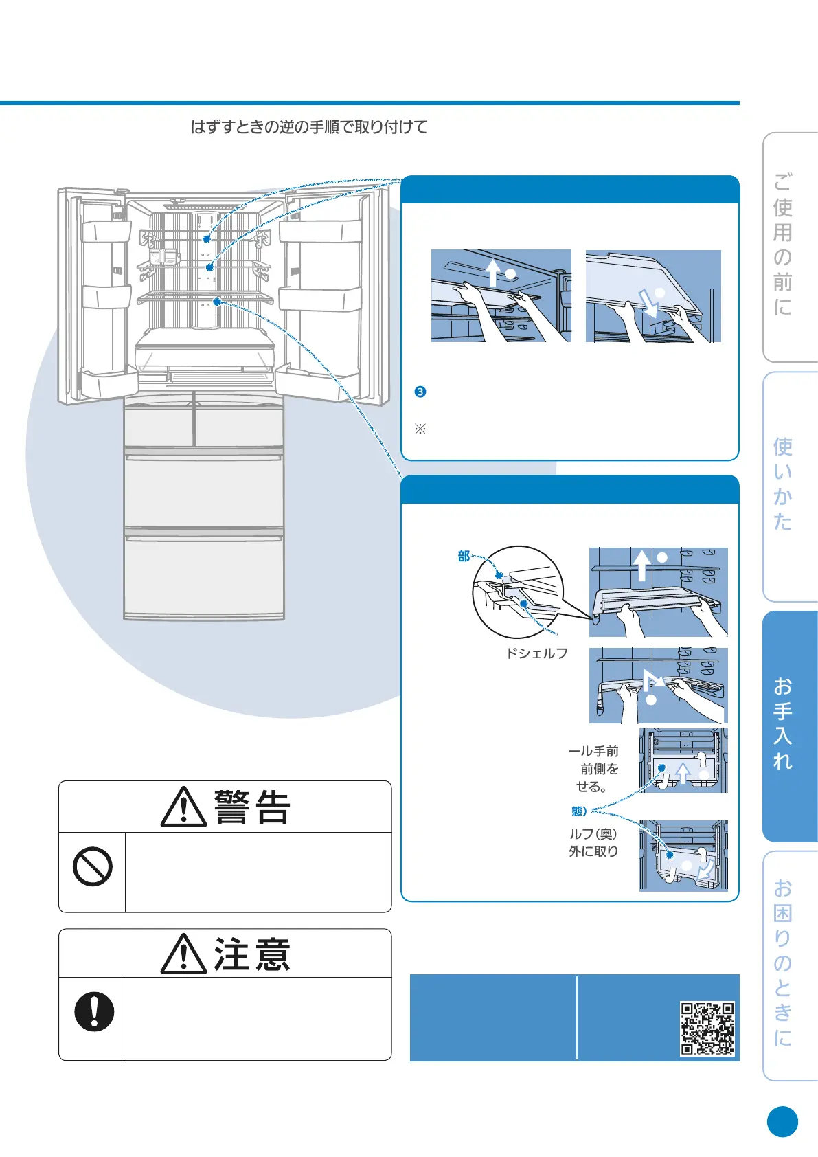 冷蔵室とドアのすき間を使ってガラスシェルフ(上)を