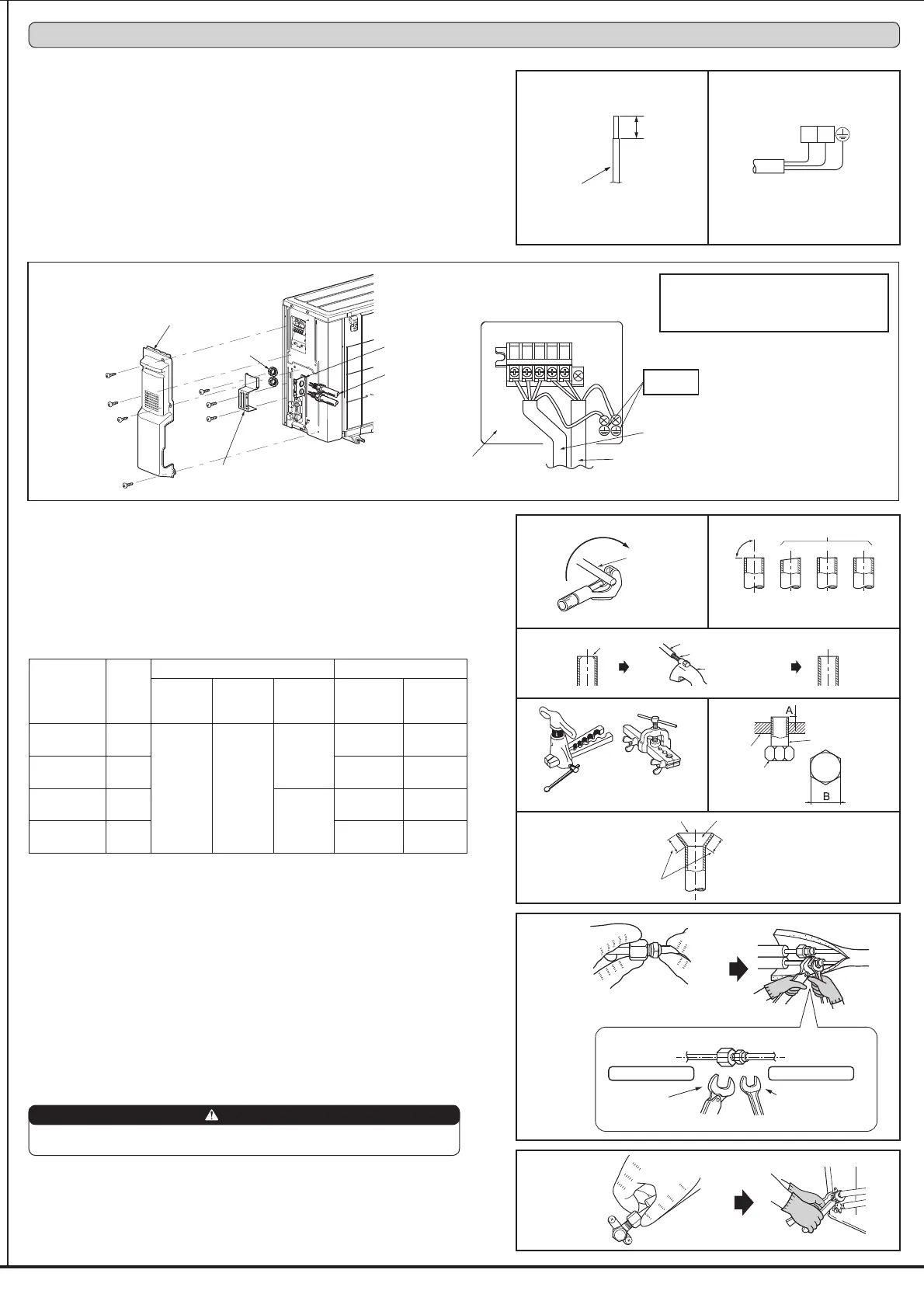 • Use tightening torque table above as a guideline for indoor unit side joints, and tighten