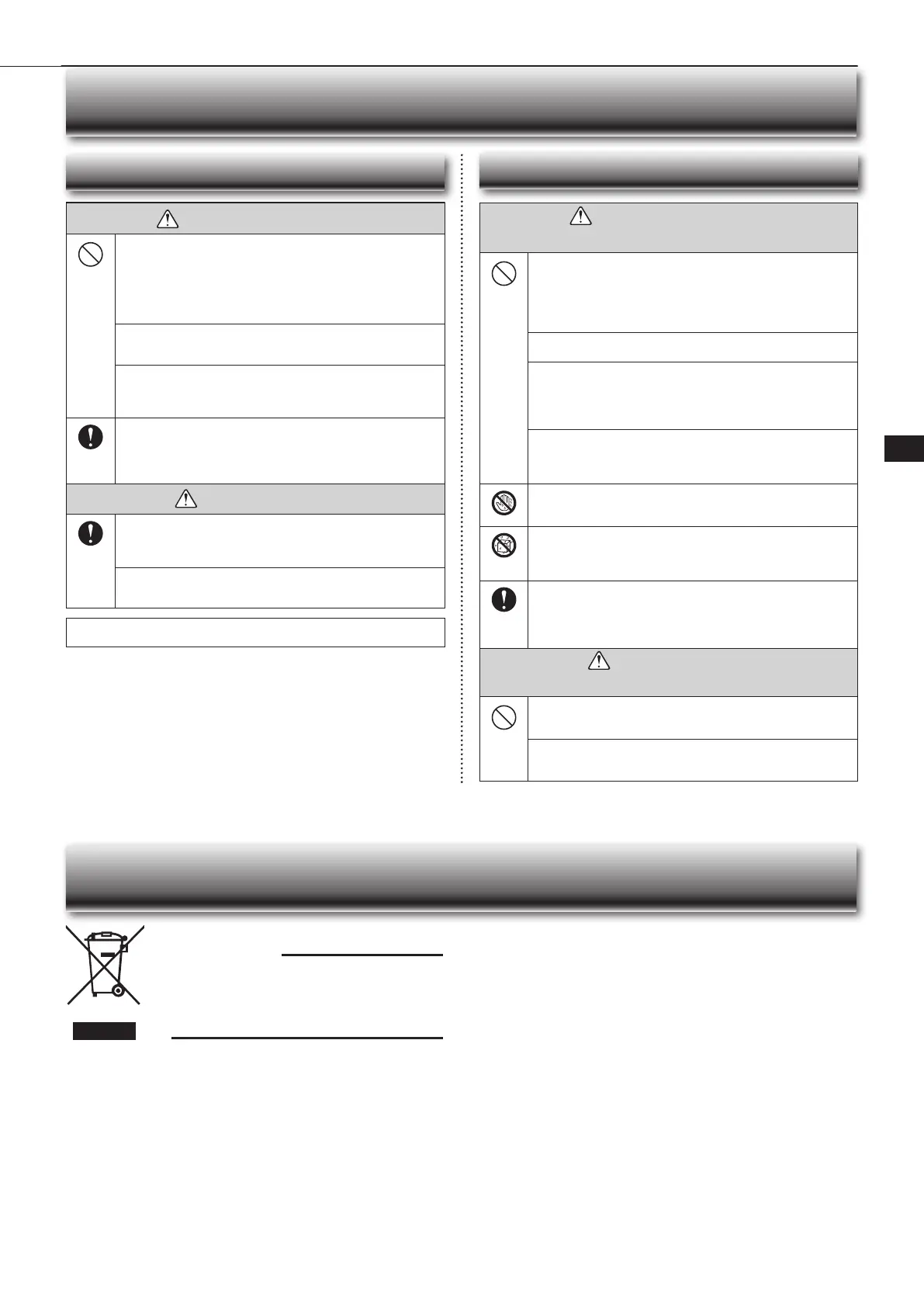 • Ceci pourrait provoquer un incendie ou un choc électrique. Dans ce
