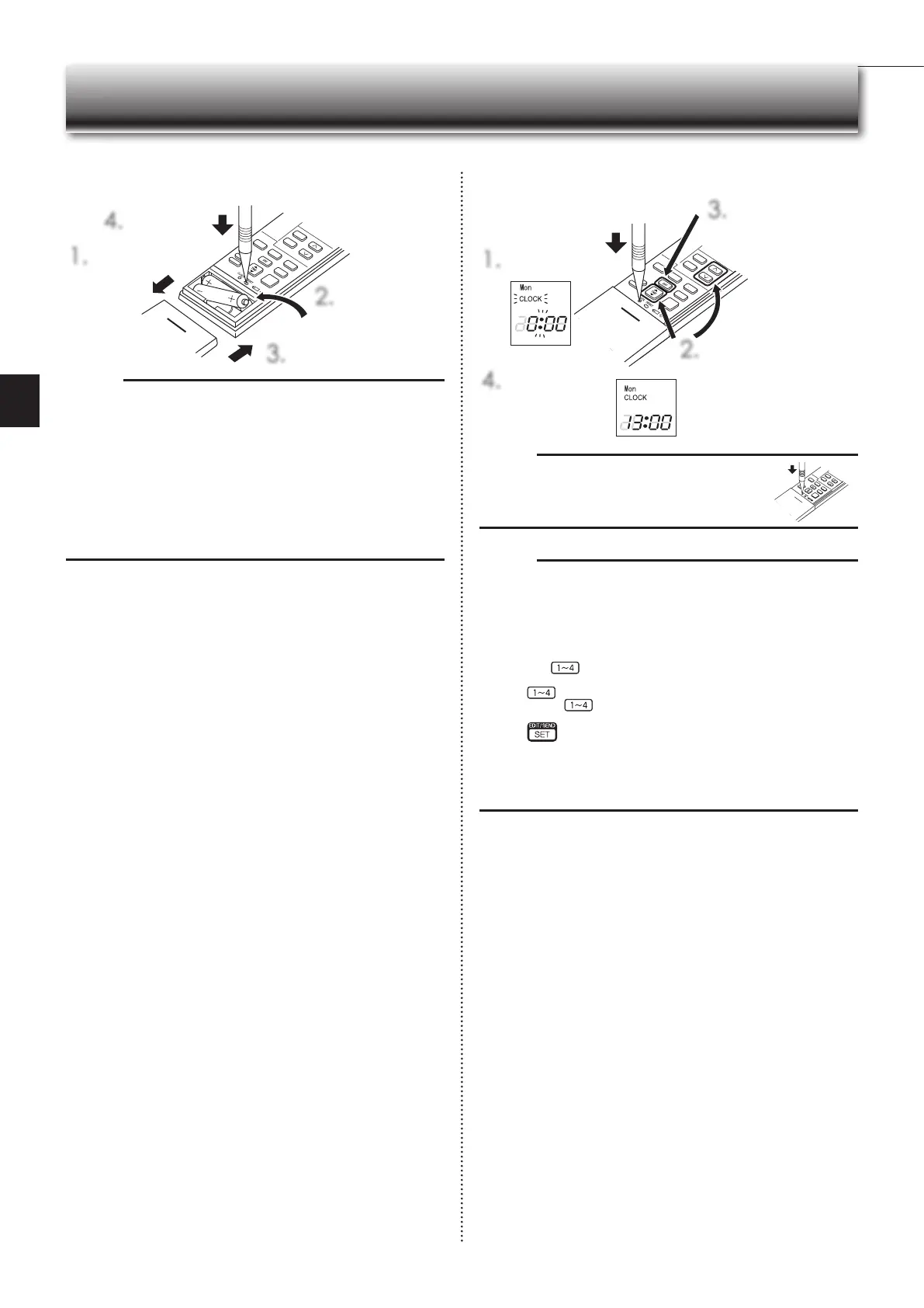 Installing the remote controller batteries Setting current time