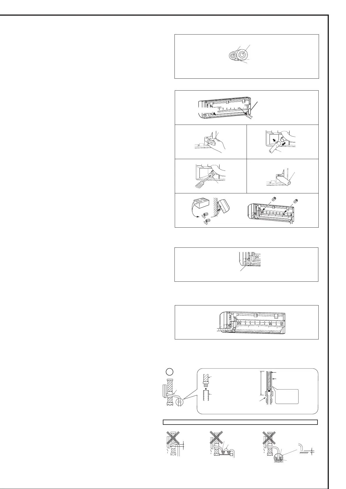 6) Insert the drain hose into wall hole sleeve (C), and attach the upper part of indoor unit onto