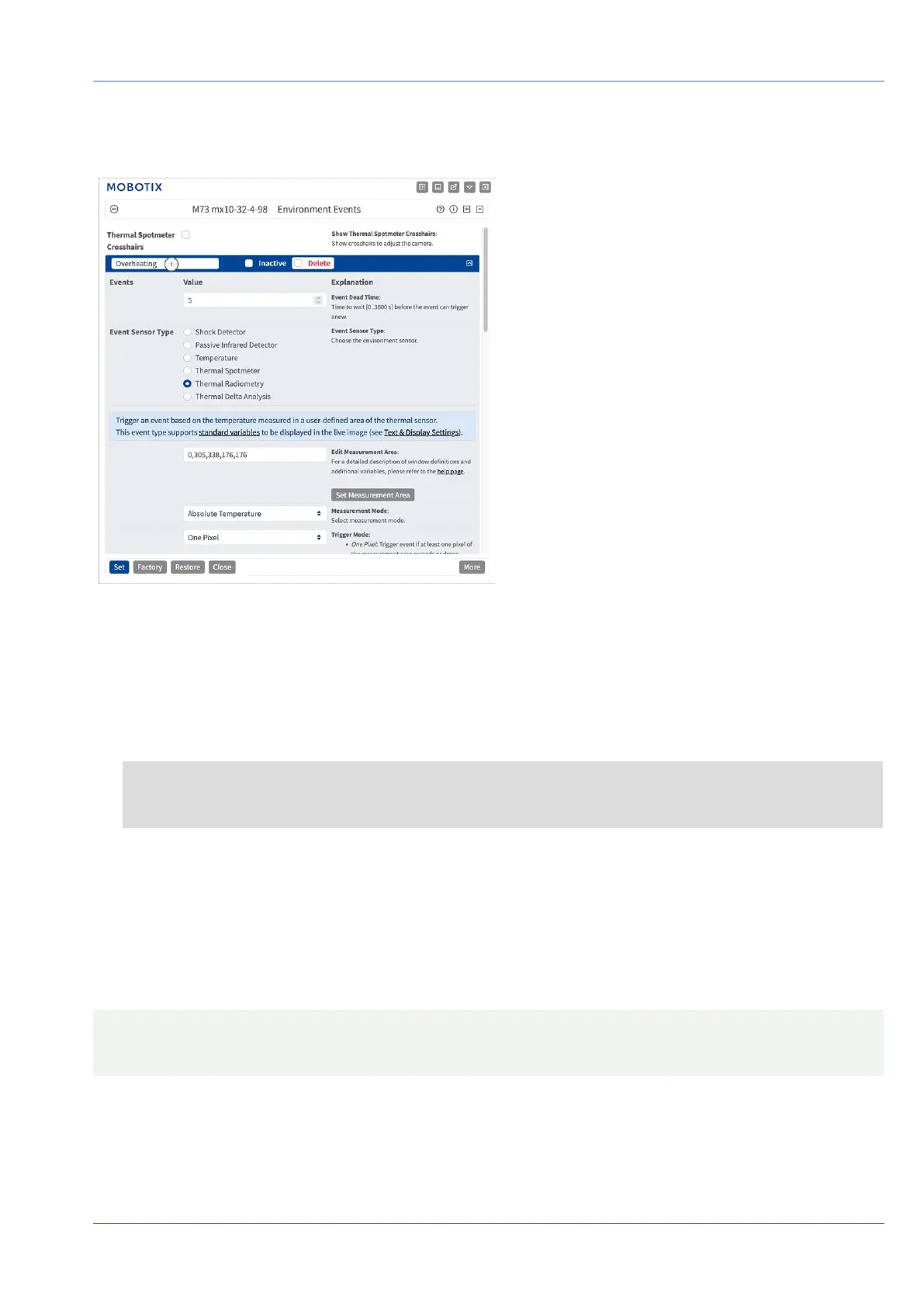 NOTE! Thermal Sensor Types and their configurable parameters are only available if a suitable thermal