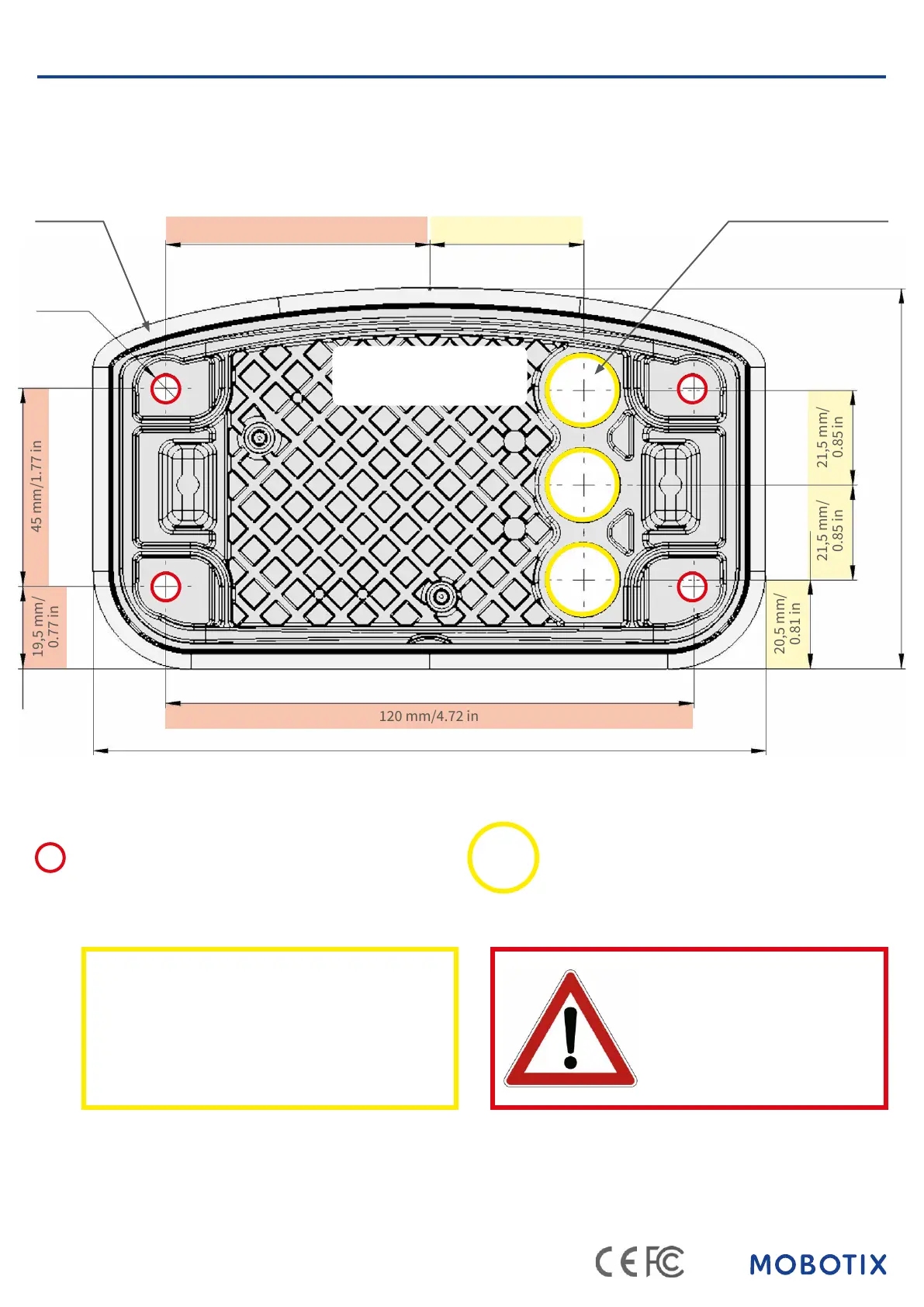 • Holes for mounting screws 5 mm diameter