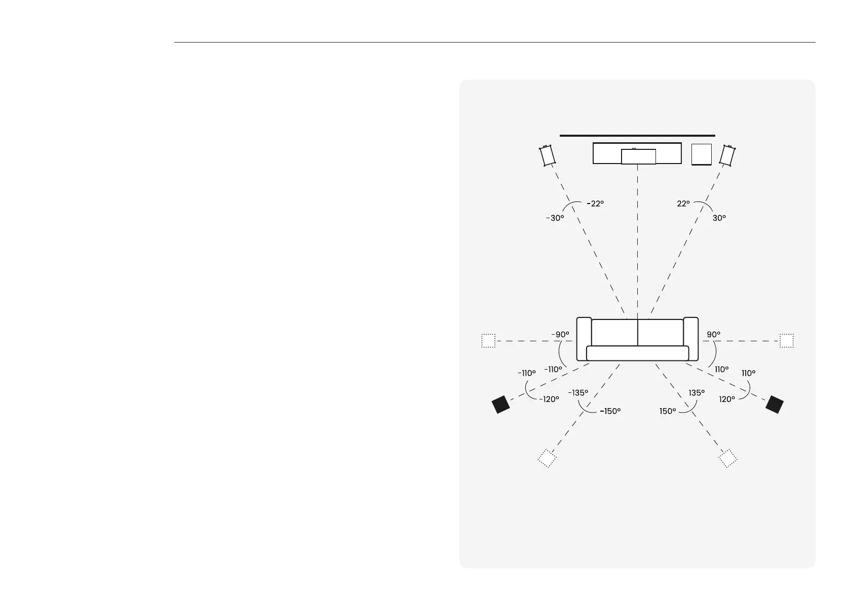 Please refer to the illustration on the right for the ideal angles and positions of each loudspeaker