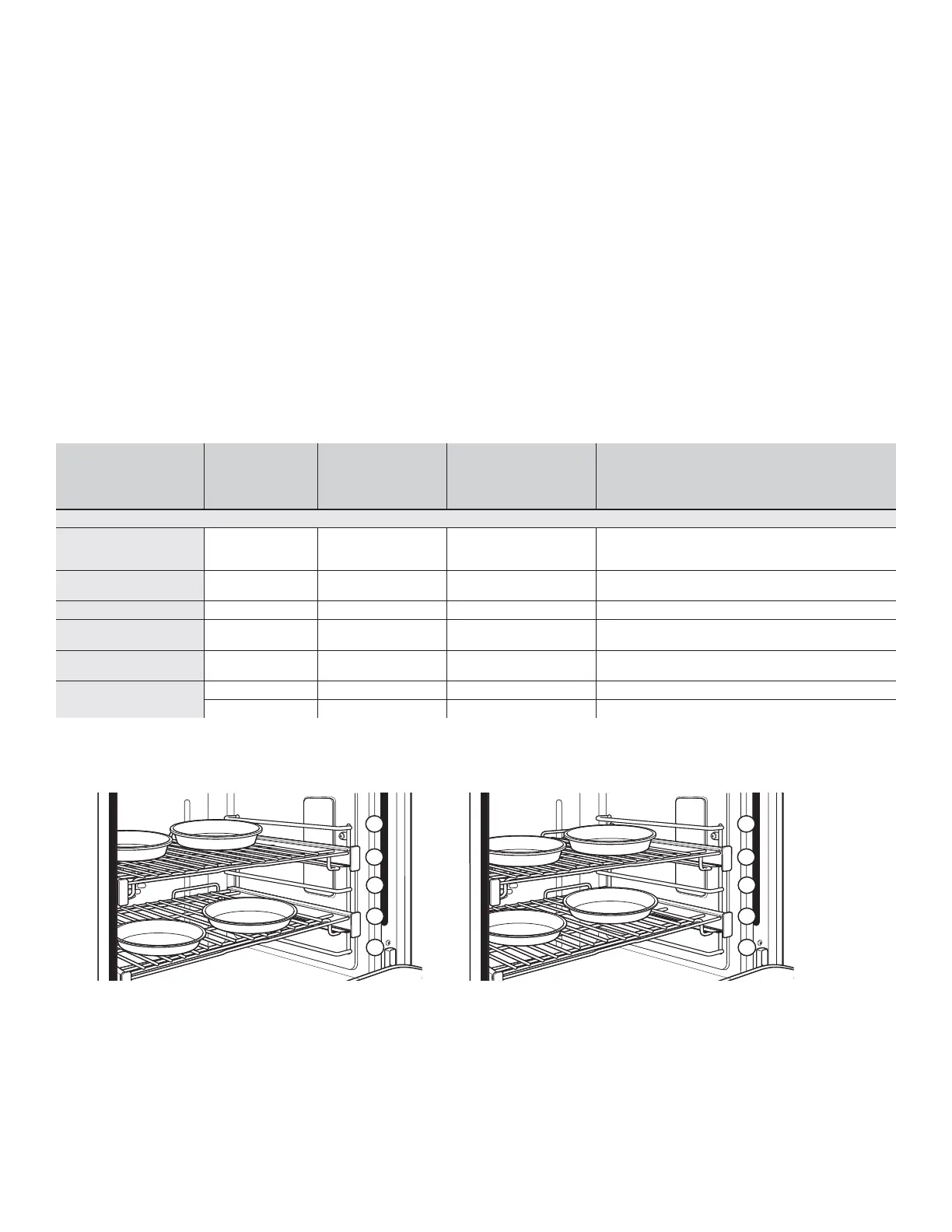 Rack positions for baking 4 cake layers at a time Rack positions for convection baking 4 cake