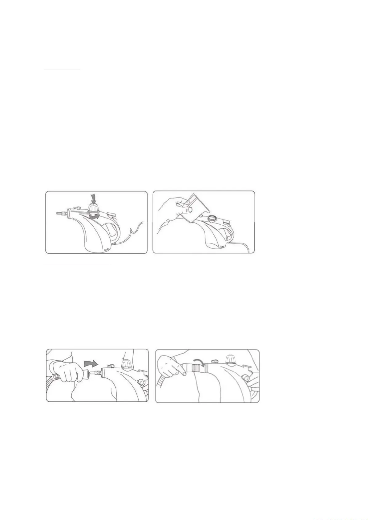 drukken en het tegen de wijzers van de klok in open te draaien. Vul de tank met behulp van de