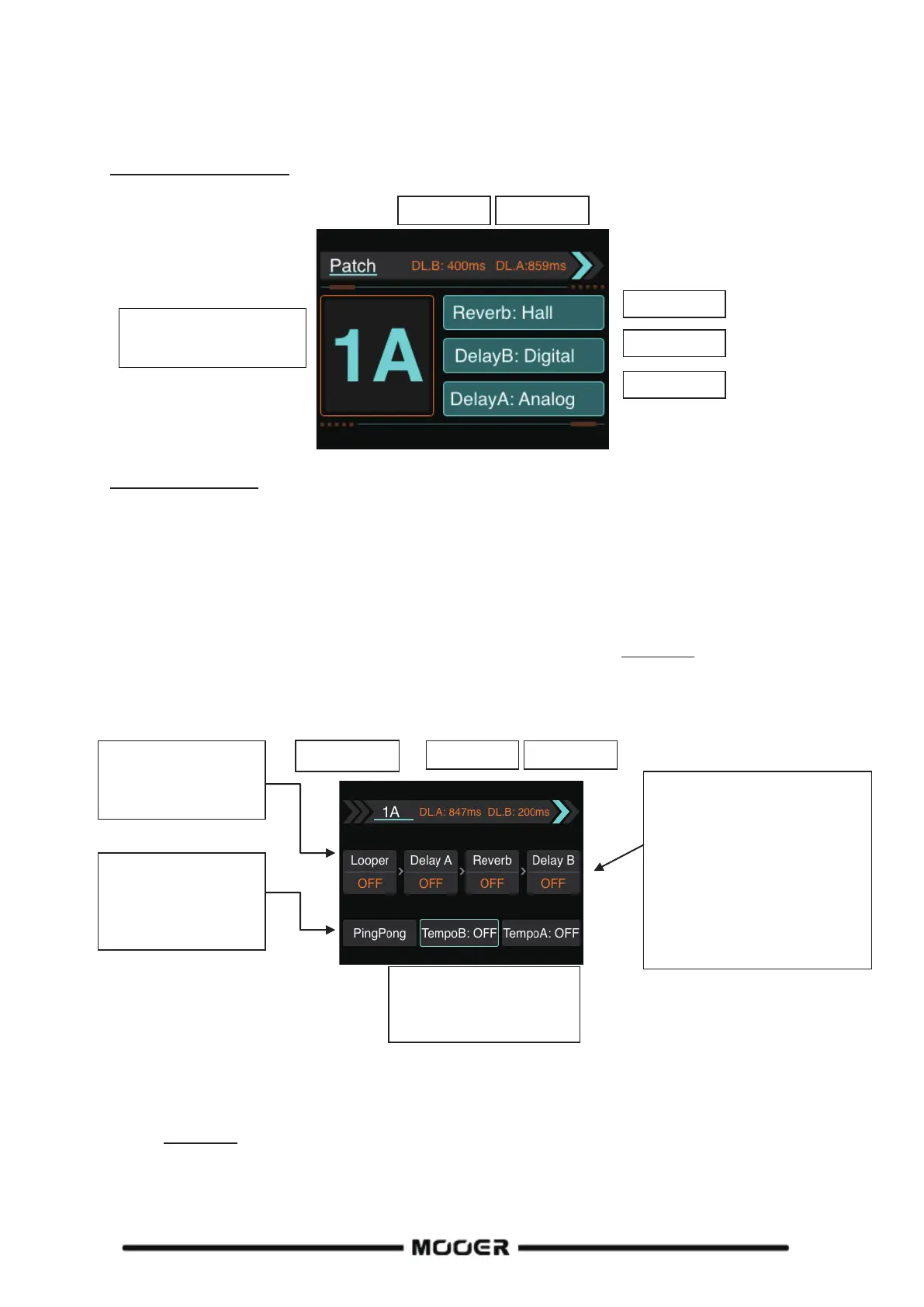 screen. Alternatively you can press the REV + A footswitches simultaneously to toggle between the