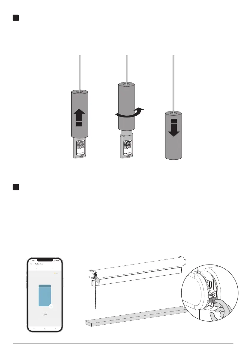 Przesuń frędzel do góry i obróć o ćwierć obrotu, aby ukryć kod konfiguracji MotionBlinds w frędzlu.