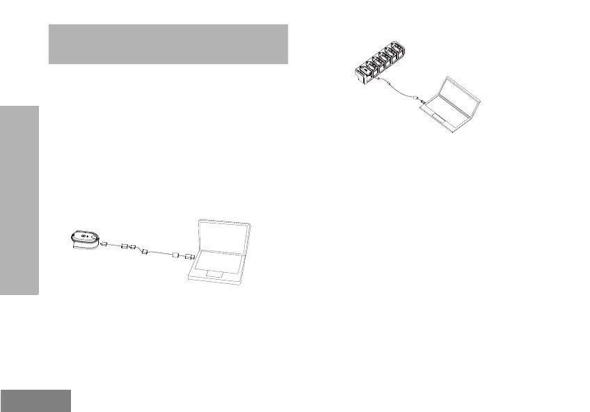1. Connectez la radio à l’aide du bloc de charge ou