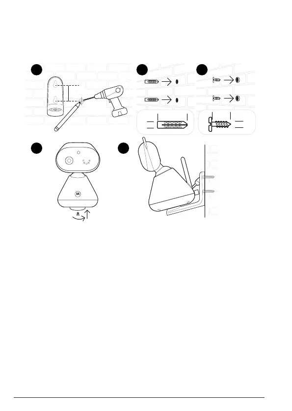 1. Marque las posiciones de 2 agujeros para tornillo en la pared. Taladre un
