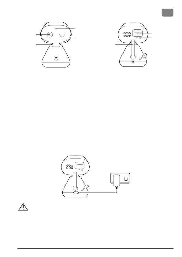 2. Kameraenheden tænder og strømindikatoren lyser først blåt og skifter til