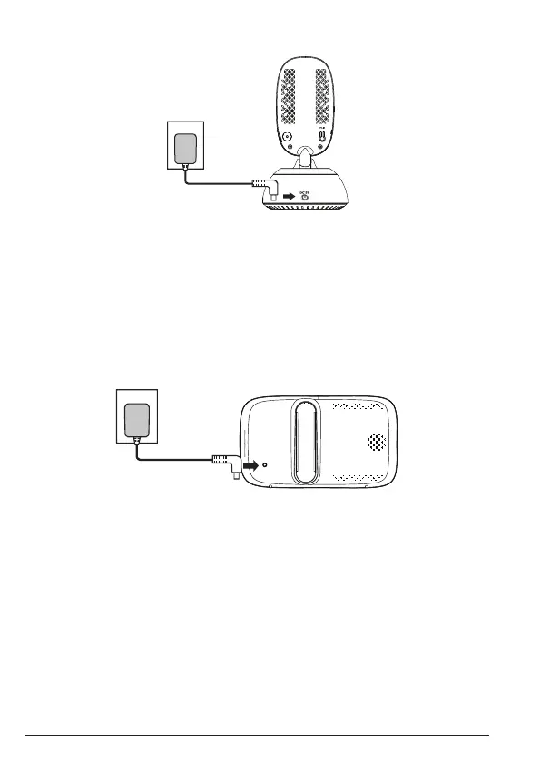 • Συνδέστε το βύσμα DC του προσαρμογέα ισχύος στη μονάδα μωρού,