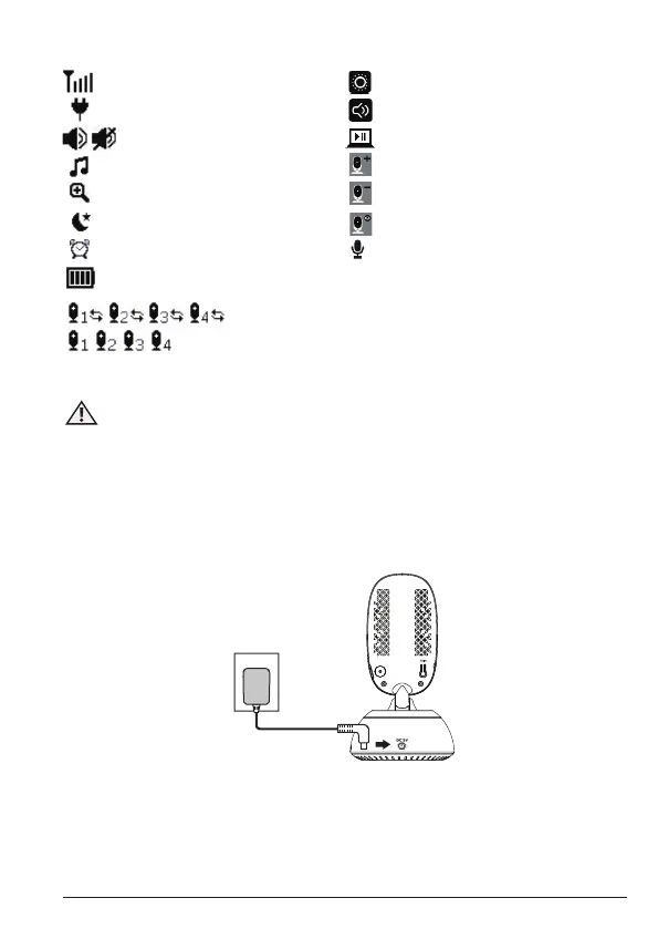 • Plug the DC plug of power adapter into the baby unit, connect other end to