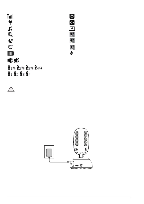 • Sæt strømadapterens jævnstrømsstik i babyenheden, tilslut den anden ende