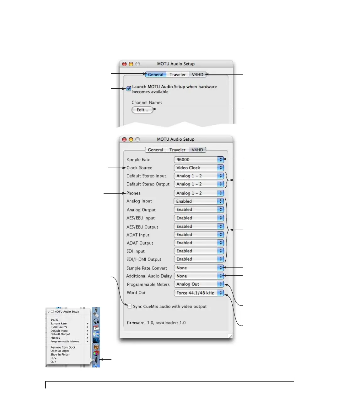 MOTU Audio Setup appears in the dock when you launch it. If the Launch MOTU Audio Setup when hardware becomes