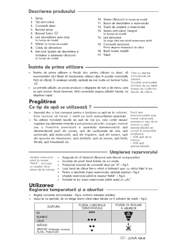 • Înainte de prima utilizare a fierului dvs. pentru călcare cu aburi, vă