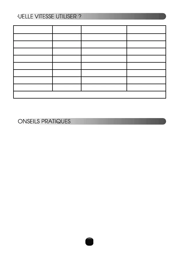 Un choix inadapté de la vitesse peut entraîner des vibrations anormales de l’appareil.