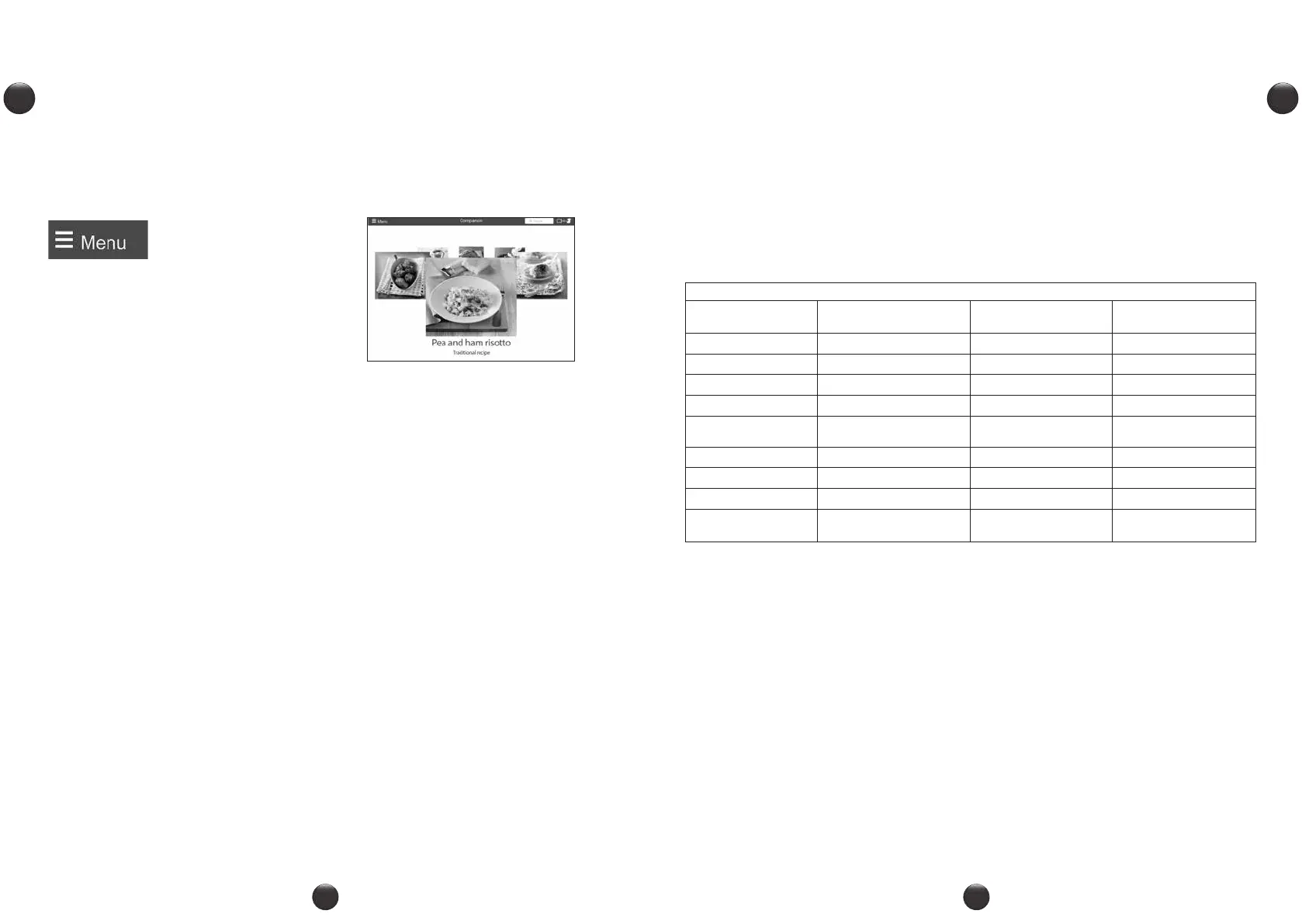 • Access the app menu to see our range of recipes.