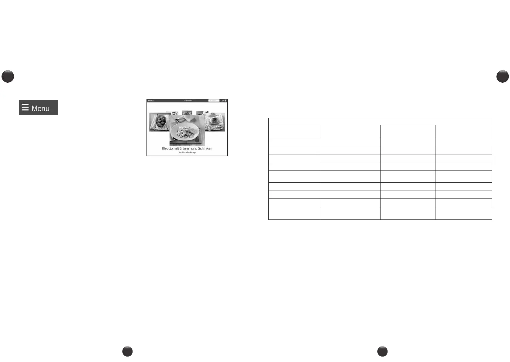 und Menge der Zutaten die entsprechende Garzeit einstellen. Siehe dazu die untenstehende Tabelle.