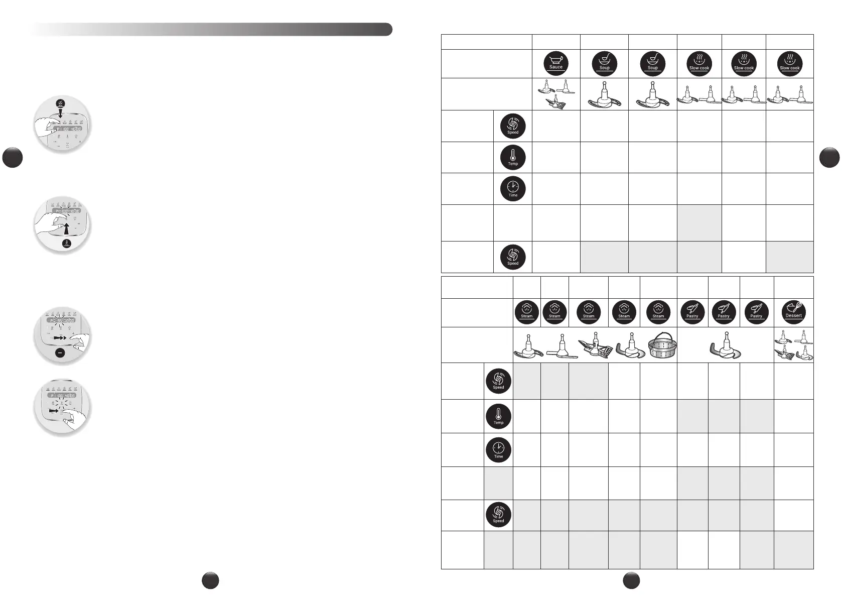 a fuoco lento P2 e P3, cottura a vapore e crema