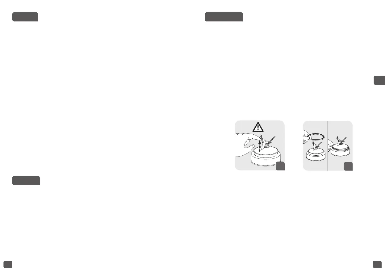 • Pas op tijdens de reiniging van het mes in de blenderkan en als u de kom