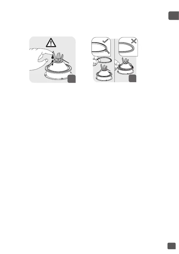 не поставяйте уплътнението (F3, O3) или ножовете с покритие от