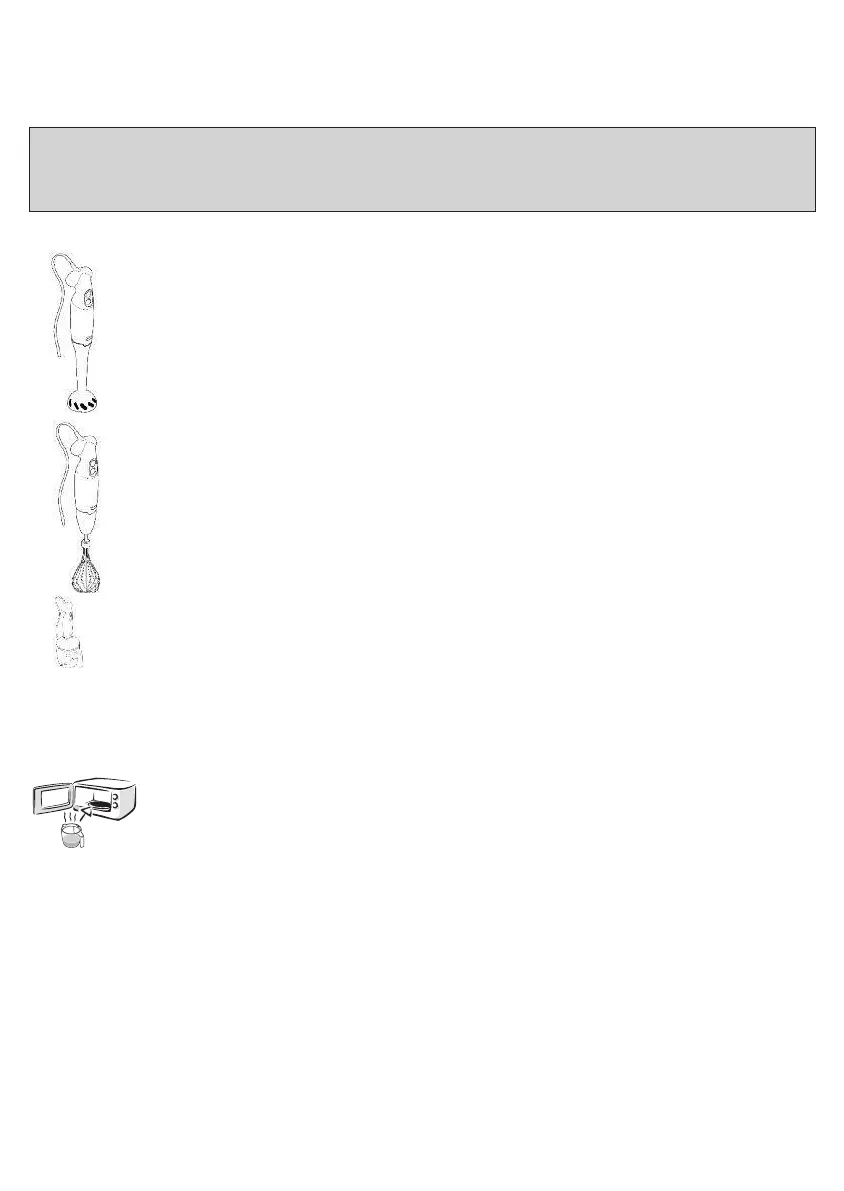 U kunt vloeibare bereidingen in de magnetron opwarmen in de kom van de hakmolen (soepen,…)