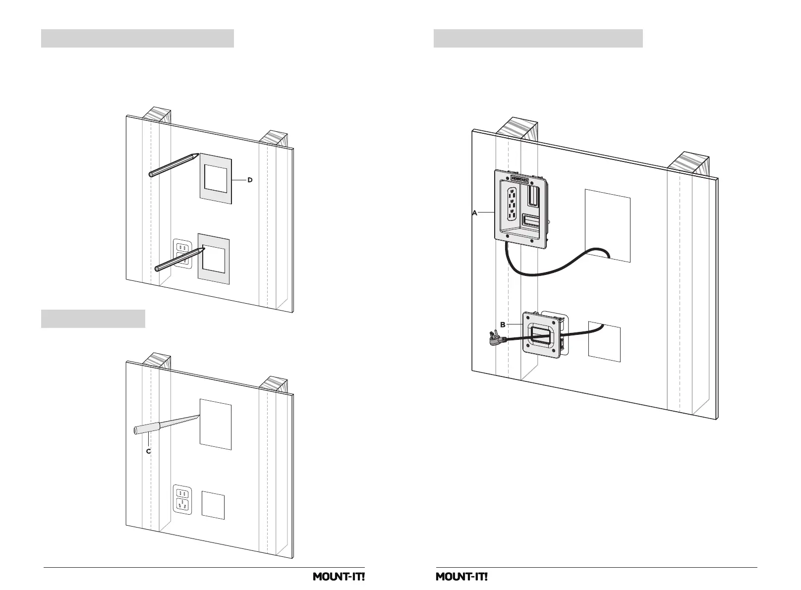 • Using the Drywall Saw (#C) cut out the pass through holes by cutting along the traced lines.