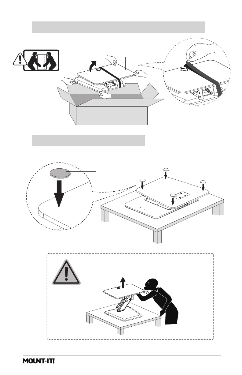 Turn the desk converter upside down on a level surface and place the adhesive Non-Slip